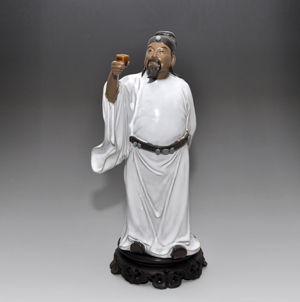 景德镇瓷雕,此作品体现了李白于狂放中洋溢着的童真般的情趣,让人联想到“两人对酌山花开,一杯一杯复一杯。我醉欲眠卿且去,明朝有意抱琴来。”的诗句。